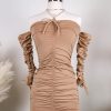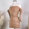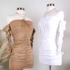 The Cottonpajamaset Mini Dress features a strapless sweetheart design, a ruched overall design and long ruched sleeves. It is fleece lined so you can be warn in the autumn and winter while still looking cute partying.