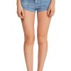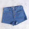 Ultra-short shorts inspired by vintage-store scores with an exposed button fly and surprisingly forward patch pockets. These shorts have an authentic stretch to them and have a flat back detail.