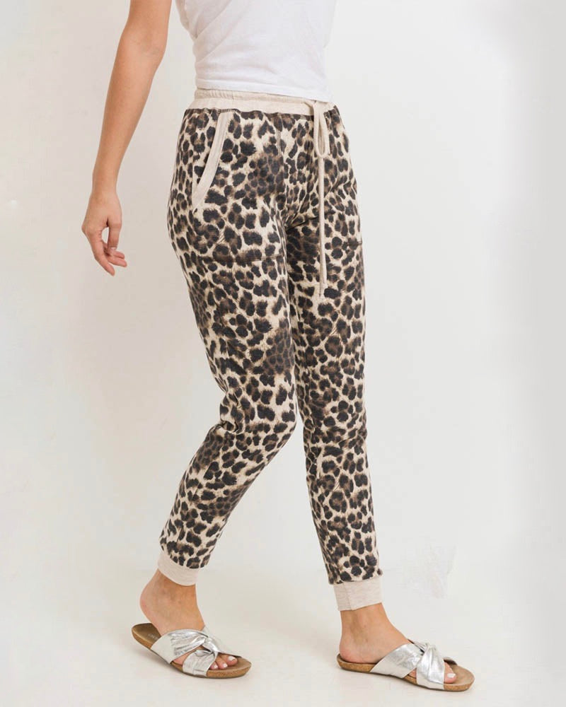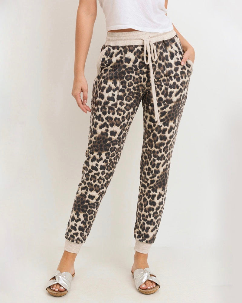 Leopard Print Joggers With Elasticized Drawstring Waist