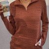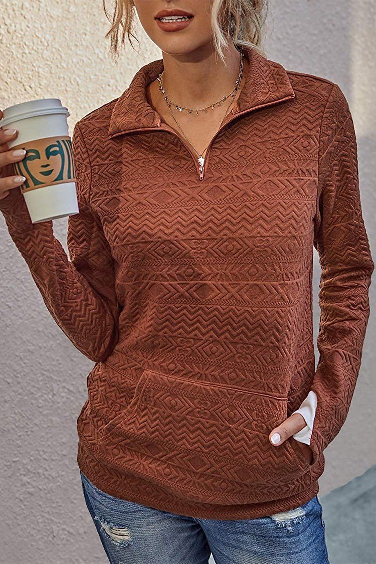Quilted Pattern Quarter Zip Loose Sweatshirt with Pocket quantity