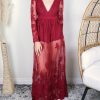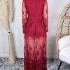 Cottonpajamaset Embroidered Maxi Dress in Deep Red