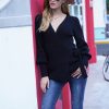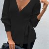 Sexy V Neck Balloon Sleeve Ribbed Wrap Knit Pullover Sweater quantity