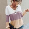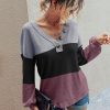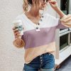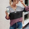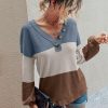 Casual Drawstring Lace V Neck Solid Color Pullover Sweatshirts