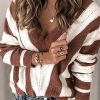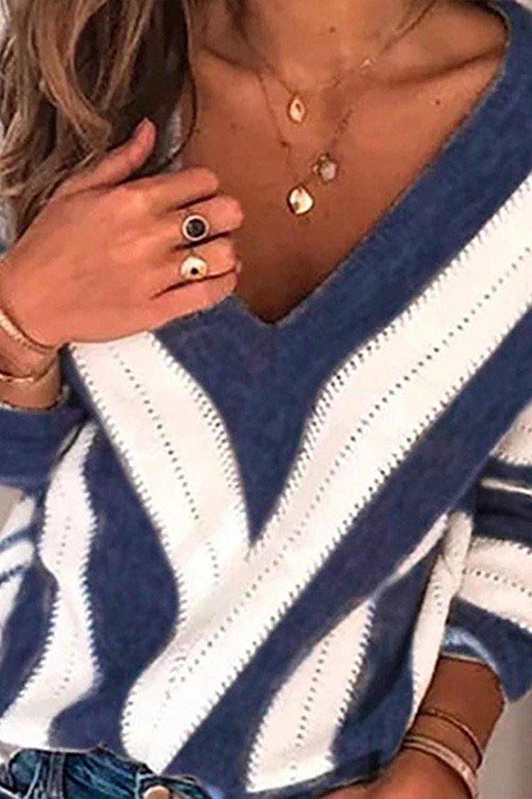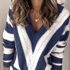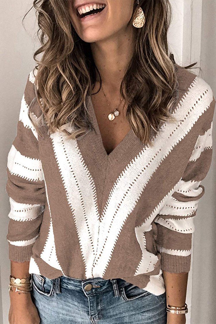 V Neck Stripe Color Block Loose Oversized Pullover Sweater